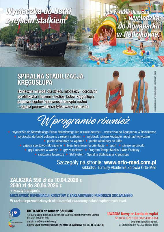 Turnusy dla osób z bólami kręgosłupa i wadami postawy ciała. Kliknij w ulotkę aby ją powiększyć. Kliknij i przeczytaj więcej o turnusach